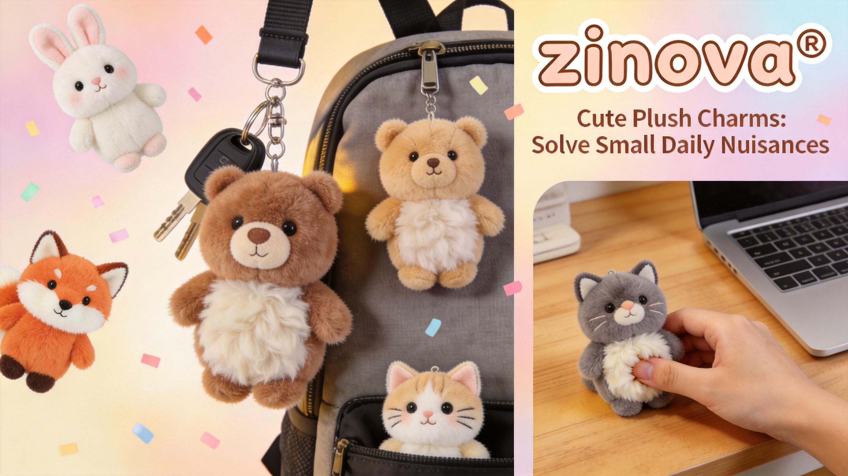 "We believe life’s most heartwarming moments often come from the smallest companions. That’s why we craft zinova’s plush keychains—tiny, huggable friends designed to tuck into your bag, dangle from your keys, and turn ordinary days into cozy, joyful little escapes, with every stitch sewn full of love."